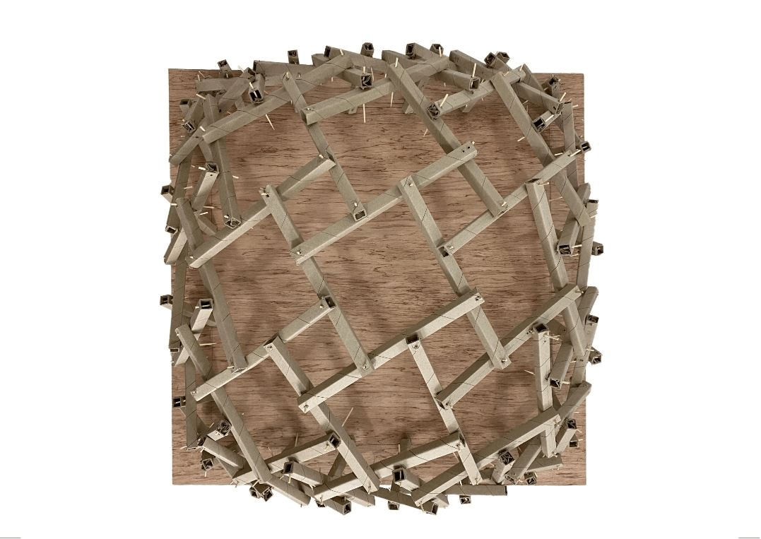 In this workshop, we will test our digital results with 10 working prototypes that will be assembled by students. Together, this new information will lead us toward a paper reciprocal frame that can enclose large, unencumbered spaces in short periods of time and bedisassembled and reassembled in different locations with minimal impact on the environment.